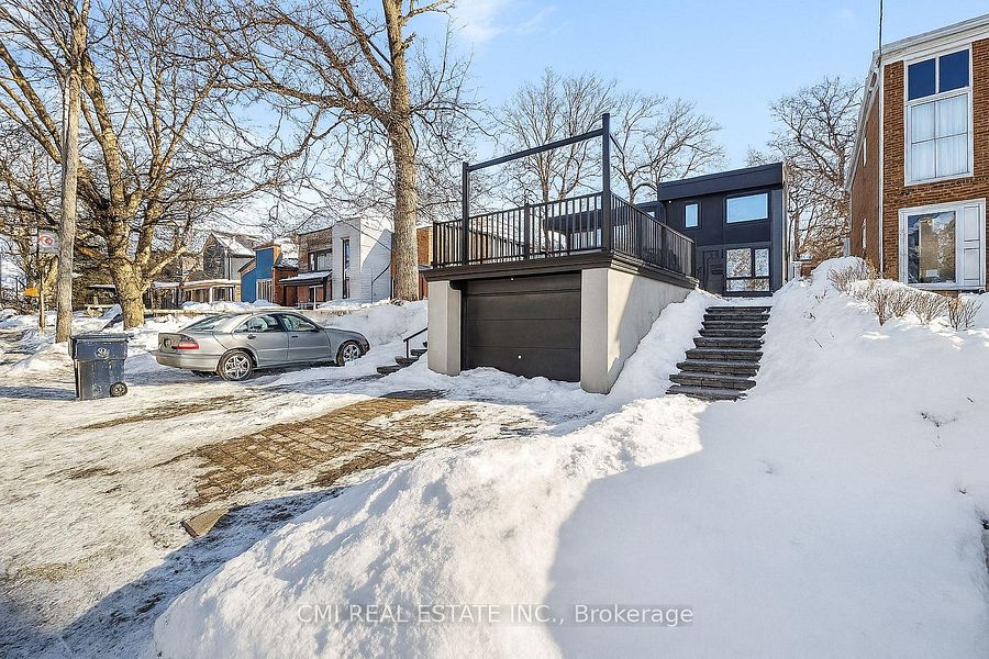 PRIME LOCATION! In the heart of The Beaches, this brand-new, completely rebuilt, modern detached home showcases timeless contemporary design and high-end craftsmanship. Offering 3+1 bedrooms, 5 bathrooms, and approximately 2,000 sq. ft. of upscale living space on a 25 115 ft lot, this home delivers luxury in one of Toronto’s most sought-after neighborhoods Live steps to top-rated schools, parks, Woodbine Beach, beach clubs, the boardwalk, major highways, and public transit-just minutes from downtown!Enjoy a private interlock driveway and garage parking. The redesigned exterior includes a roof-top front gazebo and deck, perfect for summer entertaining, along with a covered front porch featuring soaring modern ceilings. Inside, a bright foyer with 10 ft ceilings opens into a refined living and dining space with wide-plank hardwood flooring and sleek recessed lighting throughout. The custom chef’s kitchen boasts floor-to-ceiling cabinetry, premium stainless steel appliances, quartz counters, a designer backsplash, and a large center island ideal for gatherings. A spacious rear family room offers a seamless walk-out to the side deck, enhancing the indoor-outdoor flow. A stunning open-rise hardwood staircase with modern wrought-iron rails leads to the upper level, where you’ll find three luxurious bedroom suites, each with its own private ensuite. The fully finished lower level includes an additional bedroom and full bathroom-ideal for in-laws, guests, or a private home office suite.